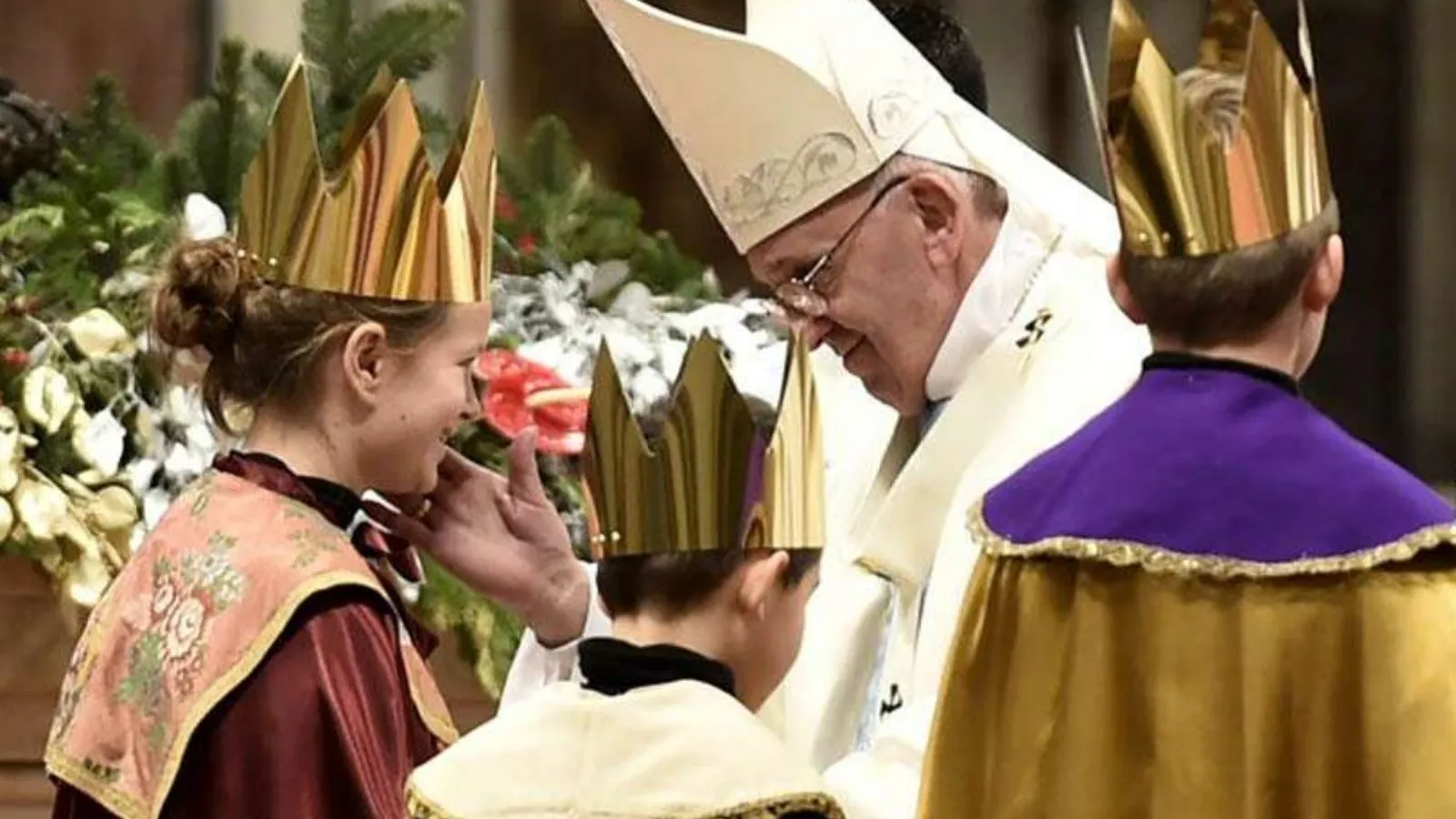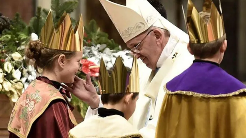 La procesión de entrada de la Epifanía del Señor comienza con el 'Adeste fideles'. El Papa se detiene a rezar ante la imagen del Niño Jesús.