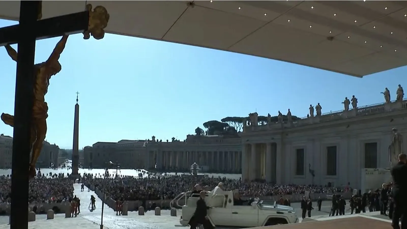 Antes de la catequesis, el Papa recorrió, como es habitual, la plaza de San Pedro, repleta de peregrinos, sentado en el papamóvil. Su rodilla le sigue dando quebraderos de cabeza, pero no renuncia al contacto con los fieles y a seguir cumpliendo con sus funciones.