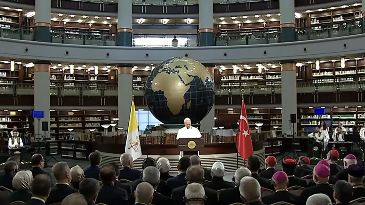 Refiriéndose al emblema de esta parte de su viaje, el puente sobre los Dardanelos, Prevost señaló el papel de Turquía como puente entre dos mundos. "Ustedes ocupan un lugar importante en el presente y en el futuro del Mediterráneo y del mundo entero, sobre todo valorizando sus diversidades internas", dijo el Papa. "Antes de conectar Asia y Europa, Oriente y Occidente, ese puente une a Turquía consigo misma, compone sus partes y la convierte, por así decirlo, desde dentro, en una encrucijada de sensibilidades, cuya homogeneización representaría un empobrecimiento".