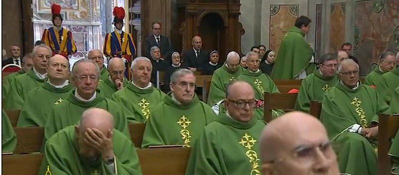 (José M. Vidal).- Rodeado de los cardenales, el Papa Francisco celebra, en la capilla paulina, el 25 aniversario de su ordenación episcopal. En una homilía improvisada y emotiva, Bergoglio negó que los cardenales sean "la gerontocracia de la Iglesia" y los calificó "de abuelos, llamados a soñar" y transmitir sus sueños a los jóvenes. Sigiiendo el triple mandado del Señor a Abraham: 'Levántate, mira y espera'.