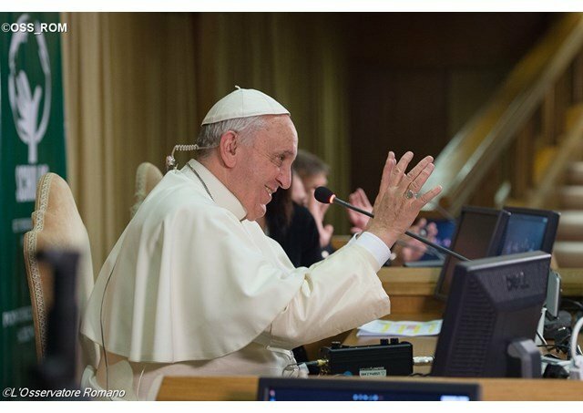 Tras escucharlos, y en un castellano acogedor, incluso bromista - "En este salón nos haría bien un poco de aire acondicionado"-, Francisco agradeció a los jóvenes su testimonio, vital "en esta sociedad que está acostumbrada a excluir, a seleccionar, a agredir, a ningunear".