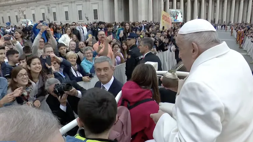 Se le ve en forma. Acompañado por varios niños, Francisco recorre la Plaza de San Pedro en el papamóvil, saludando, bendiciendo, sonriendo, bromeando y hasta tomando mate, que le comparten unas compatriotas. Como en los buenos tiempos. Sin ni siquiera utilizar la silla de ruedas, se baja del papamóvil y se acerca, a paso lento, con su bastón en la mano, a la sede, rodeado todavía de las flores primaverales de Pascua florida.