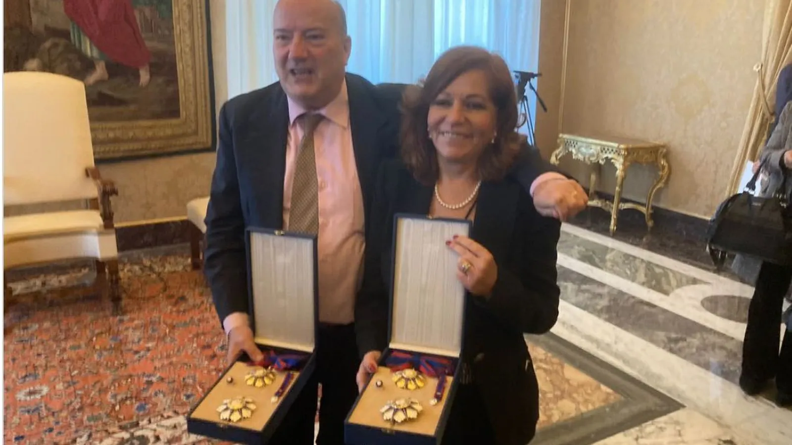 El papa Francisco entregó hoy una condecoración pontificia a los decanos de la información vaticana, la mexicana Valentina Alazraki y el estadounidense Philip Pullella, en un hecho inédito con el que ha querido "rendir homenaje" al periodismo, durante una audiencia especial en el Palacio Apostólico Vaticano.