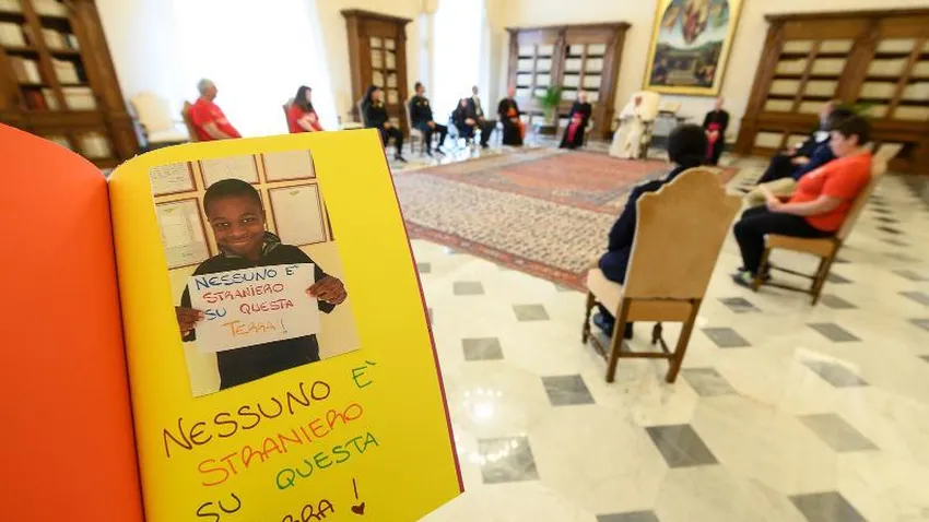 Francisco recibió a una delegación de atletas que recaban fondos para la sanidad italiana