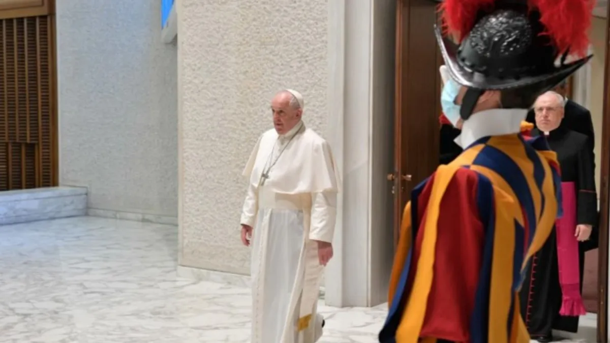 Antes de comenzar su catequesis, el Papa explica que, con motivo del coronavirus, “estoy aquí, un poco distante y no hago lo que hago siempre: acercarme a ustedes. Hay peligro de contagio. No me gusta hacer esto, pero es por su seguridad. Nos saludamos de lejos, pero sabed que estoy cerca de vosotros de corazón. Espero que entendáis por qué hago esto”.