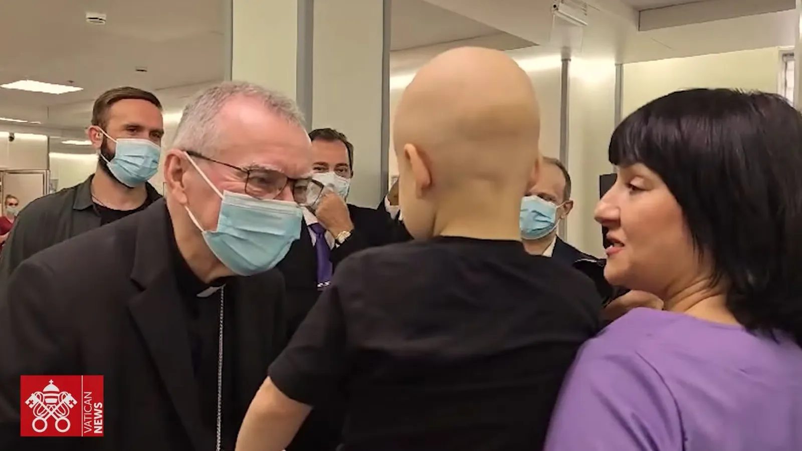 Parolin visita en Ucrania el hospital infantil destruido y la catedral de Santa Sofía