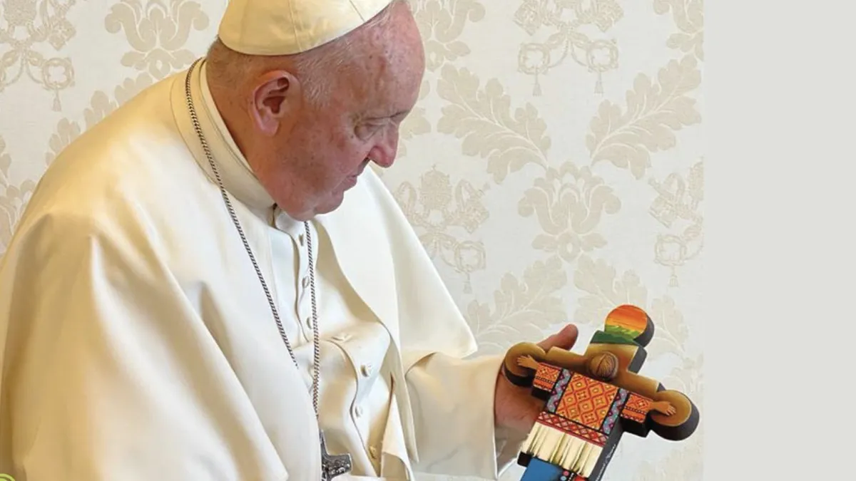 Al entregarle la cruz elaborada por artesanas y artesanos de los pueblos originarios de Chiapas (México), la cual tiene moldeada una mujer abrazada a la cruz y contemplando el horizonte "-y que es el signo que como recuerdo de esta visita vamos dejando por donde pasamos-", les pidió que dijeran a la Vida Religiosa del Continente, que enviemos al Vaticano, todo aquello que pueda enriquecer la iconografía, la expresión artística y la reflexión en torno a la mujer latinoamericana y del Caribe.