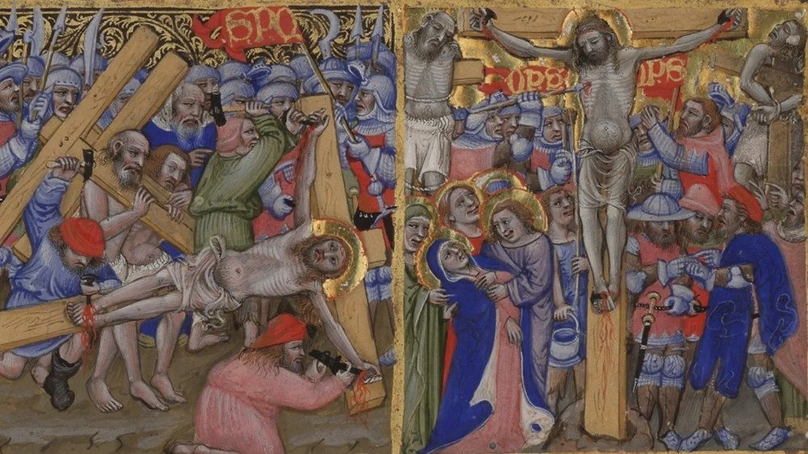 Las escenas rápidas y detalladas del Vía Crucis provienen del códice Vat. Lat.2639. Llevando el madero de la cruz, Jesús sale al encuentro de las mujeres de Jerusalén llorando y les dice: «No lloren por mí, sino por ustedes y por sus hijos». Esta ilustración se yuxtapone como fotogramas cinematográficos con los de Cristo clavado en la cruz y los de la crucifixión.
