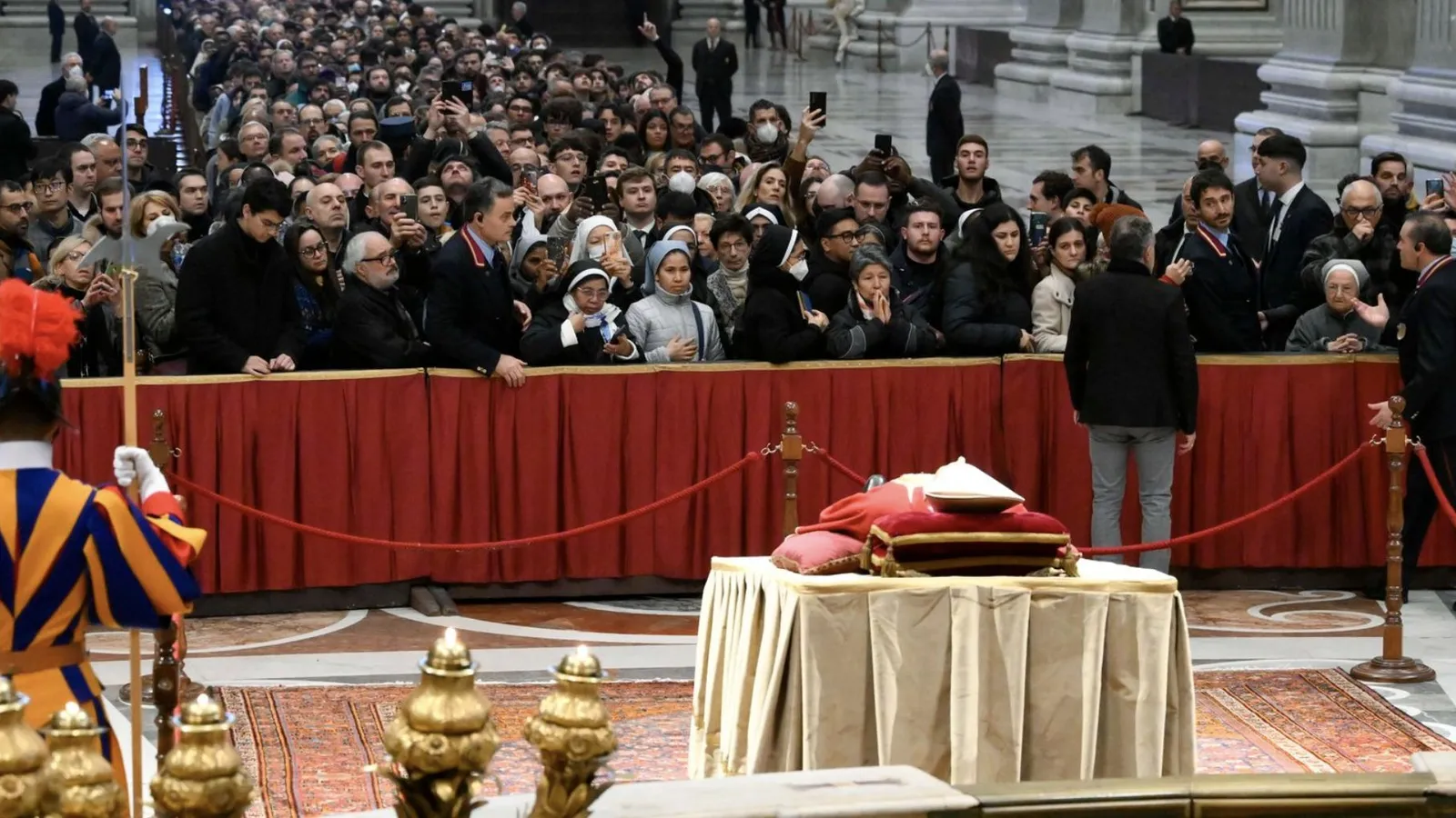 Benedicto XVI falleció el sábado a los 95 años y desde este lunes está siendo despedido por miles de fieles que visitan su capilla ardiente.
