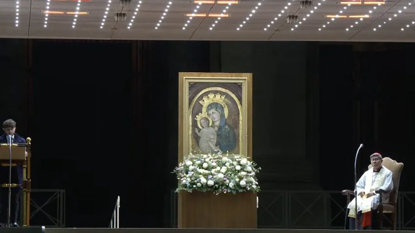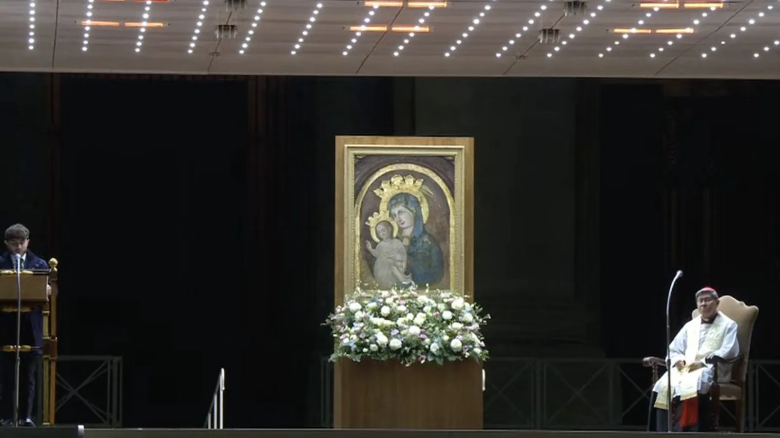 A diferencia de Parolin, Tagle apenas pronunció una oración al comienzo de la liturgia, y no se arrodilló ante la Virgen, sino que permaneció sentado en la silla que el día anterior había permanecido vacía