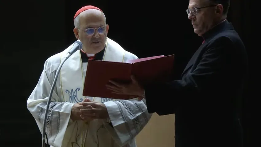 El cardenal Tolentino introduce el rosario en la plaza De San Pedro, que mañana cambia de hora y lugar
