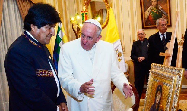 Por su parte, el Gobierno de Bolivia defendió que el crucifijo sobre una hoz y un martillo que fue obsequiado por el presidente Evo Morales al papa Francisco es un símbolo de los agricultores y los obreros, que "son pueblos de Dios".