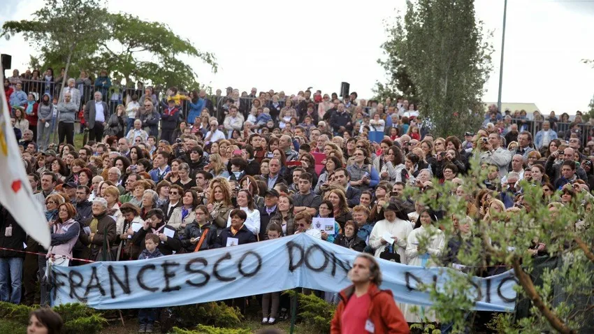 Pancarta al Papa en la parroquia