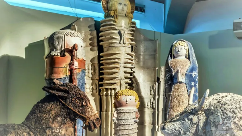 El Belén, estéticamente alejado de las representaciones más clásicas, procede de la localidad de Castelli, en la región de Los Abruzos (centro), y está compuesto por cincuenta y cuatro figuras de la cerámica típica de la zona.