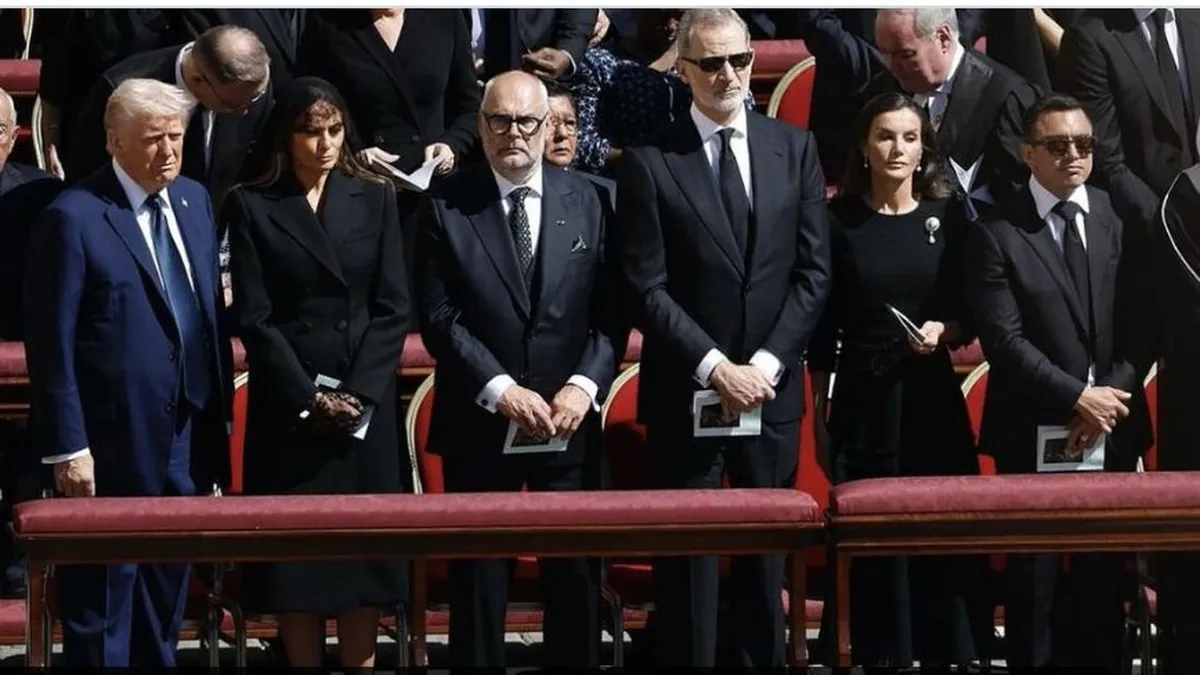 La disposición de los grandes del mundo ante el Papa de la misericordia la marca un estricto protocolo vaticano. El presidente de Argentina (por ser el país natal del Papa Francisco), Javier Milei, el presidente de Italia, Sergio Mattarella, y la primera ministra italiana, Giorgia Meloni, fueron los mandatarios que estuvieron sentados más cerca del féretro del Pontífice, este sábado, durante la misa funeral.