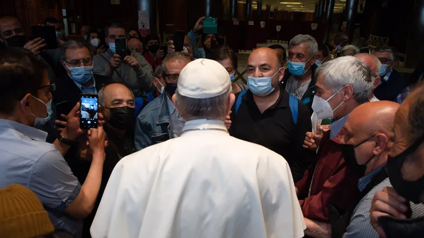 El Papa se reúne con un centenar de refugiados y sin techo en el Aula Pablo VI