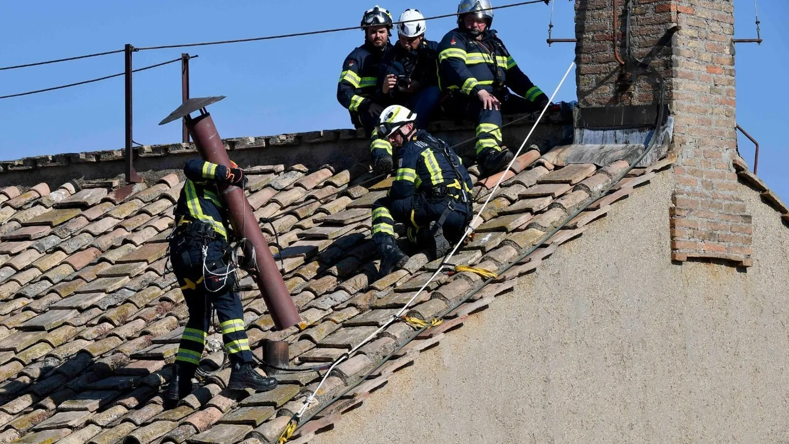 Los bomberos colocan la chimena en la Capilla Sixtina