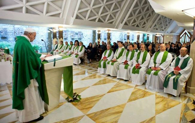 "¿Es una palabra hipócrita? ¿Un poco de aquí, un poco de allí, para estar bien con todos? ¿Es una palabra vacía, sin sustancia, llena de vacuidad? ¿Es una palabra vulgar, trivial, es decir mundana? ¿Una palabra sucia, obscena? Estas cuatro palabras no son propias de los hijos de la luz, no vienen del Espíritu Santo, no vienen de Jesús, no son palabras evangélicas... Este modo de hablar, siempre de cosas sucias, o de mundanidad o de vacuidad o hablar hipócritamente".