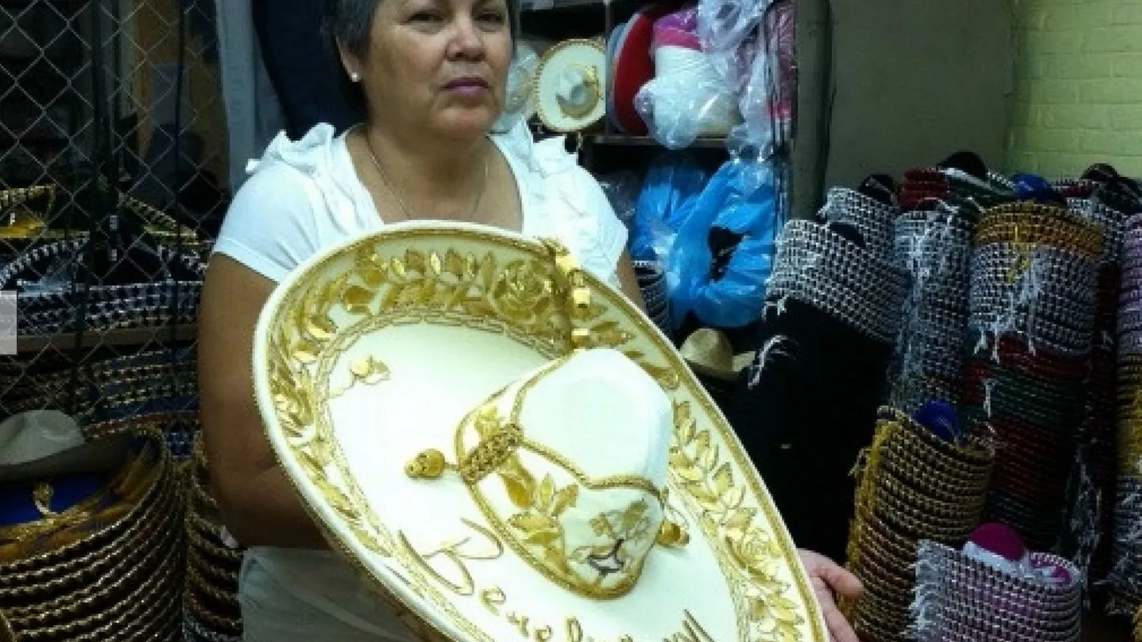-Un sombrero charro con hilos de oro que recibió durante su visita a México.