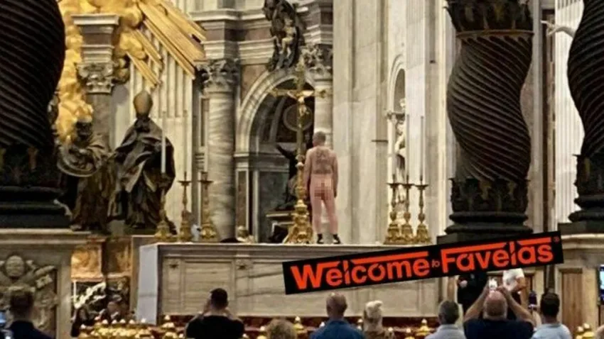 Un móvil captó al hombre desnudo sobre el altar de San Pedro y difundida en el grupo «Welcome to Favelas» en Telegram