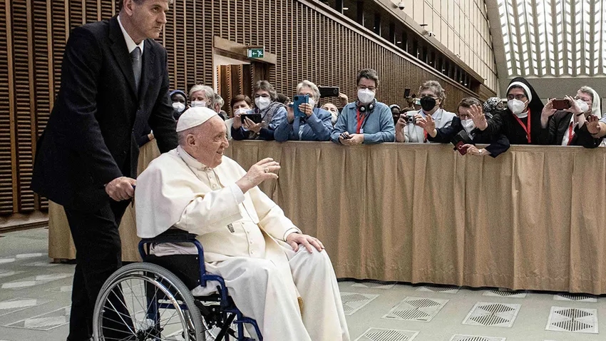 En el último año y medio, se ha convertido en los pies, las manos y los ojos del papa Francisco. Es el hombre alto y de pies grandes que sin embargo logra pasar inadvertido mientras las multitudes fijan la mirada en el anciano al que va empujando en su silla de ruedas. Es Sandro Mariotti, el callado-cayado que guía los pasos del Pontífice cuando lo lleva en silla de ruedas