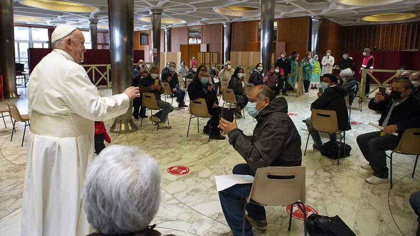 El drama del Covid caracterizó la fiesta de San Jorge en 2021, cuando el Papa decidió celebrar su onomástica realizando una visita sorpresa para saludar a unas 600 personas pobres y sin hogar acogidas y atendidas por algunas asociaciones romanas y las Misioneras de la Caridad que esperaban recibir la dosis de vacuna en el Aula Pablo VI, que desde enero de ese año se había convertido en una pequeña clínica. Después de saludar a todos los presentes, el Papa se dirigió al gran mostrador sobre el que estaban dispuestos paquetes de galletas, snacks y zumos de frutas y compartió un enorme huevo de chocolate distribuido, respetando las normas sanitarias de la época, a todos con la ayuda de los voluntarios.