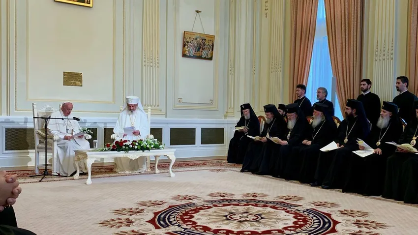 En sus palabras, Bergoglio agradeció "de corazón" la acogida del patriarca ortodoxo, los metropolitas y los obispos del Santo Sínodo rumano y recordó los "lazos de fe que nos unen" a católicos y ortodoxos. "Hay una fraternidad de la sangre que nos precede, y que, como una silenciosa corriente vivificante nunca ha dejado de irrigar y sostener nuestro caminar a lo largo de los siglos".