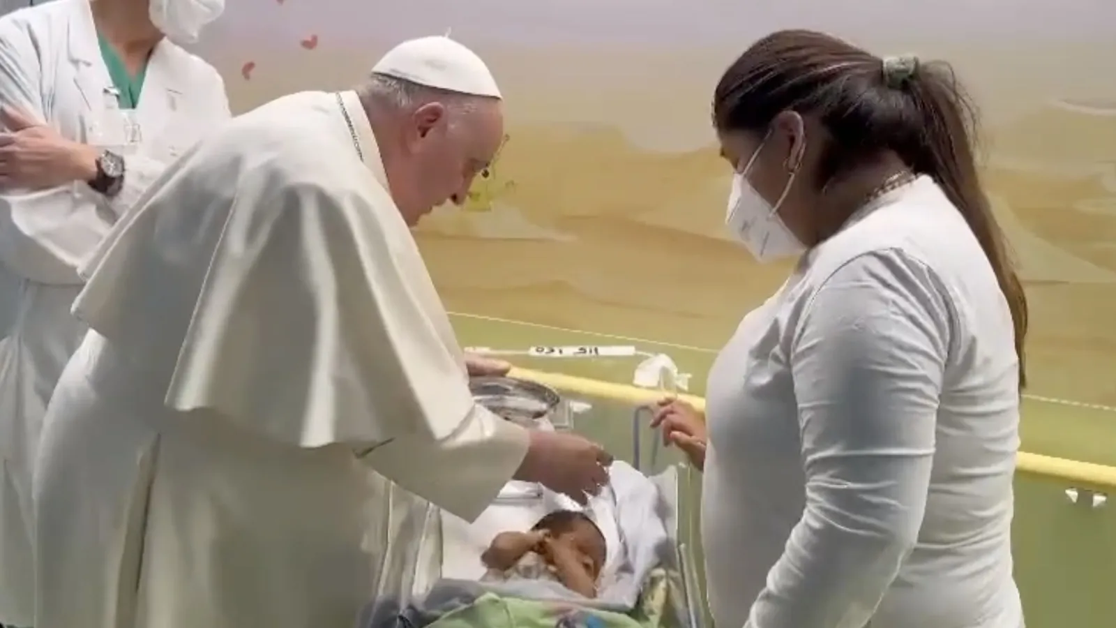 El papa visita a niños y bautiza a un bebé durante su ingreso hospitalario