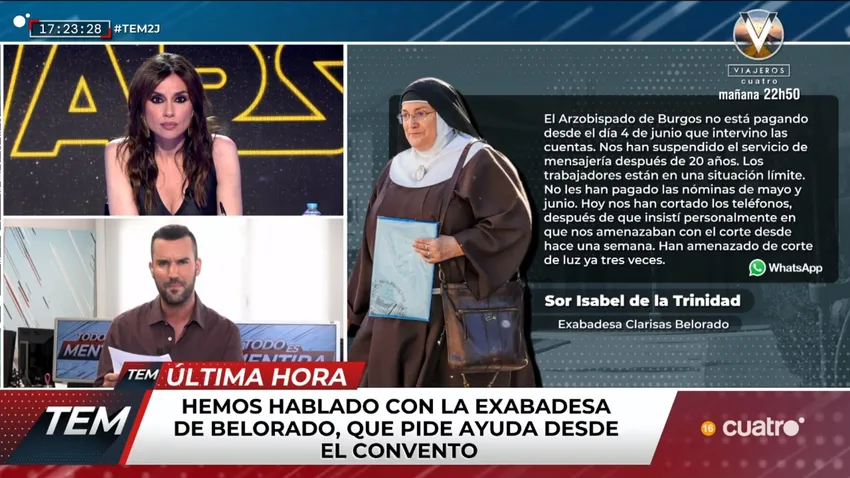 Vuelve la guerra de comunicados a Belorado. A las declaraciones de la ex abadesa en Todo es mentira, acusando al arzobispo de Burgos, Mario Iceta, de "coacción" y de quererlas "asfixiar" económicamente, la diócesis ha respondido lamentando el "temerario desprecio a la verdad" de la religiosa excomulgada y anunciando que ""nuestros servicios jurídicos valorarán estas manifestaciones y actuarán en consecuencia".