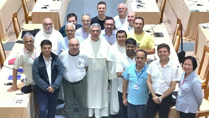 A las 17:30 hemos tenido el último de los coloquios, esa propuesta que hizo al Capítulo el nuevo Maestro. Se ha tratado, en primer lugar, las fraternidades sacerdotales de Santo Domingo. Desde siempre, los sacerdotes podían pertenecer a la tercera Orden (de hecho, por ejemplo, Pío XII era terciario dominico). Lo nuevo es la distinción entre fraternidades laicales y sacerdotales. Fray Florentino Bolo, de la Provincia de Filipinas, ha presentado el tema. En estos momentos hay 379 sacerdotes vinculados a fraternidades, en 17 países, aparte de otros que individualmente se sienten cercanos a la Orden. Tienen una Regla propia, aprobada el 4 de enero de 1972. El 25 de marzo de 2019, el Maestro de la Orden incorporó algunas cuestiones a la Regla, como el uso del hábito o las iniciales O.P. Tienen un estatuto canónico aprobado por la Santa Sede.