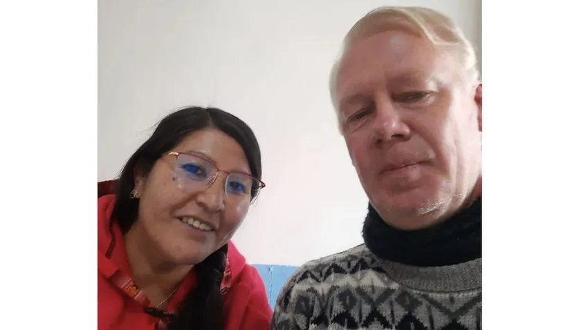Me llamo Uwe Heisterhoff, soy alemán, hermano en la Congregación del Verbo Divino y vivo desde el 1996 en El Alto (Bolivia), en la misma parroquia donde hace 33 años el hermano Andrés Lorenzo Calzón inició esta gran obra con ayuda generosa de España. A mi lado se ve a Lic. Lucía Quispe, quien era una de las primeras jóvenes, que en su tiempo ayudó al Hno. Andrés en el comienzo. En un pequeño cuartito de nuestra casa hizo la contabilidad y así la conocí. Ya hace tiempo terminó su estudio y lleva conmigo la dirección.