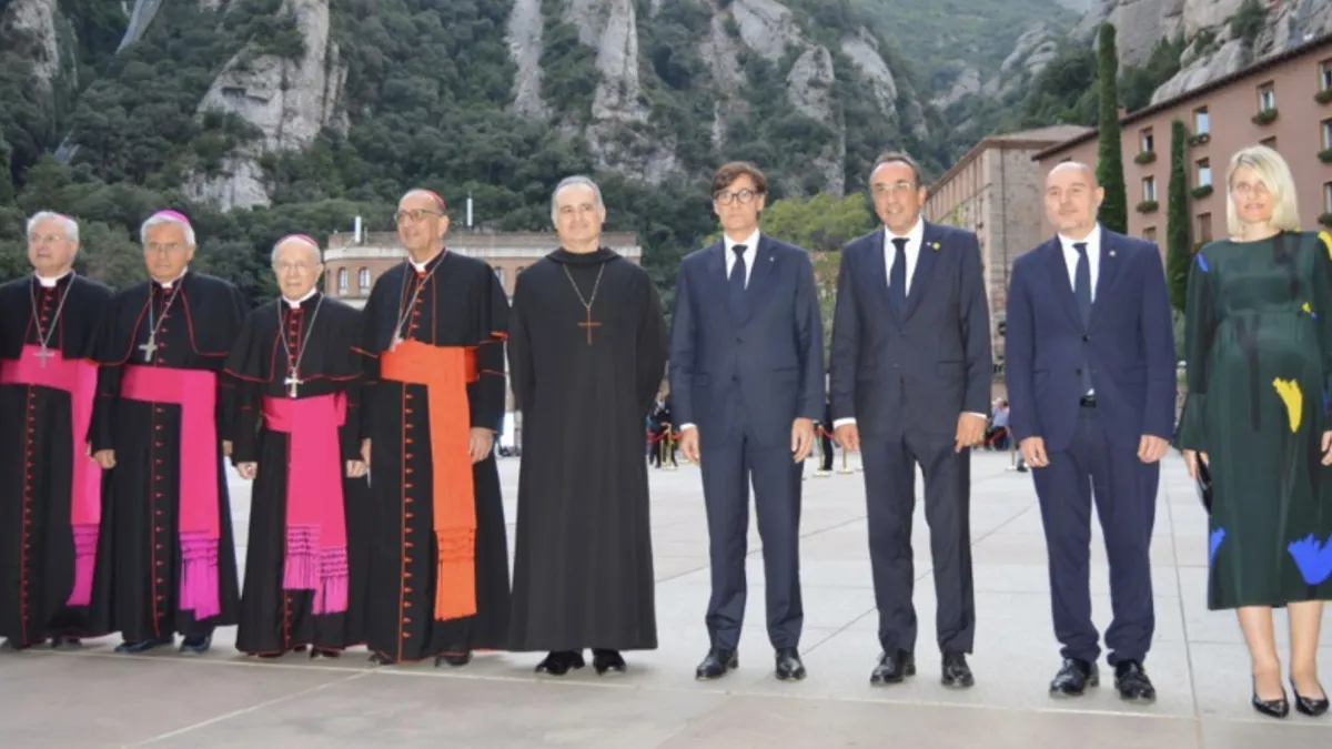 Desde parroquianos que lucían, atados al cuello, pañuelos de sus comunidades eclesiales hasta trabajadores de los hoteles de la abadía que, a pie de calle, contemplaban la animada situación, los entornos de la basílica se llenaban de una emoción unánime por Montserrat; "una emoción que todos tenemos, vengamos de donde vengamos", como después definía el presidente catalán, Salvador Illa, desde el presbiterio del monasterio, lleno hasta los topes.