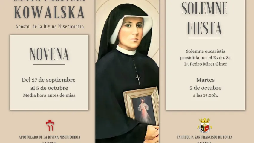 La Asociación Apostolado de la Divina Misericordia de Valencia, tiene previsto celebrar la Novena y la Fiesta en honor a Santa Faustina Kowalska