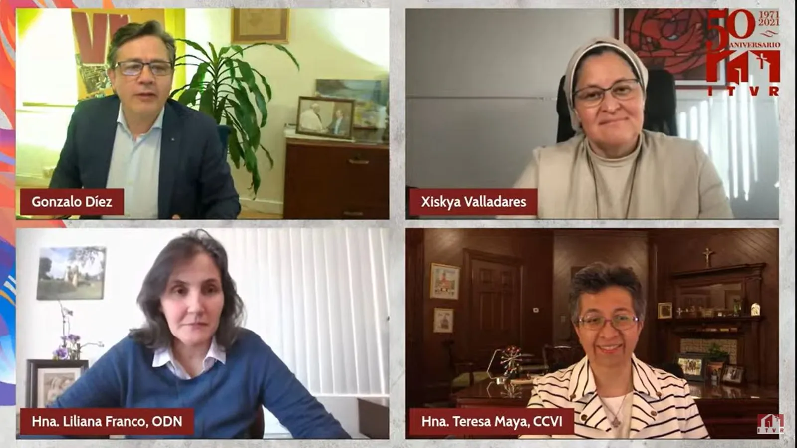 Signo de esta esperanza referida por Díez son las tres ponentes con que ha contado el evento: La Hna. G. Liliana Franco Echeverri, odn., presidenta de la CLAR (Confederación Caribeña y Latinoamericana de Religiosas y Religiosos); Hna. Teresa Maya, ccvi, expresidenta de la LCWR (Conferencia de Religiosas Femeninas de los Estados Unidos, por sus siglas en inglés) y la Hna. Xiskya Lucía Valladares Paguagua, rpm. Misionera digital, profesora, speaker y cofundadora de iMisión.