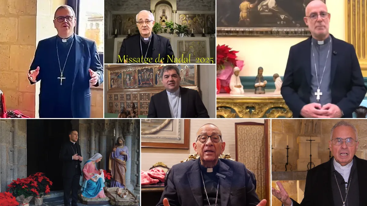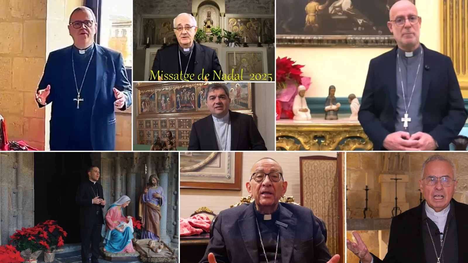 Siete de los diez obispos con diócesis en Cataluña han felicitado esta Navidad a sus fieles con mensajes en vídeo difundidos entre el 21 y el 24 de diciembre. A pesar de la diversidad de voces, espacios y estilos —algunos sentados, la mayoría de pie—, los mensajes comparten un hilo conductor claro: la esperanza cristiana en un mundo herido, la centralidad del nacimiento de Jesús y la llamada a no olvidar a los más vulnerables. La puesta en escena, tal como se puede apreciar en la fotografía adjunta, refuerza este mensaje con una presencia destacada del belén, las figuras del nacimiento y espacios catedralicios o capillas cargados de simbolismo.